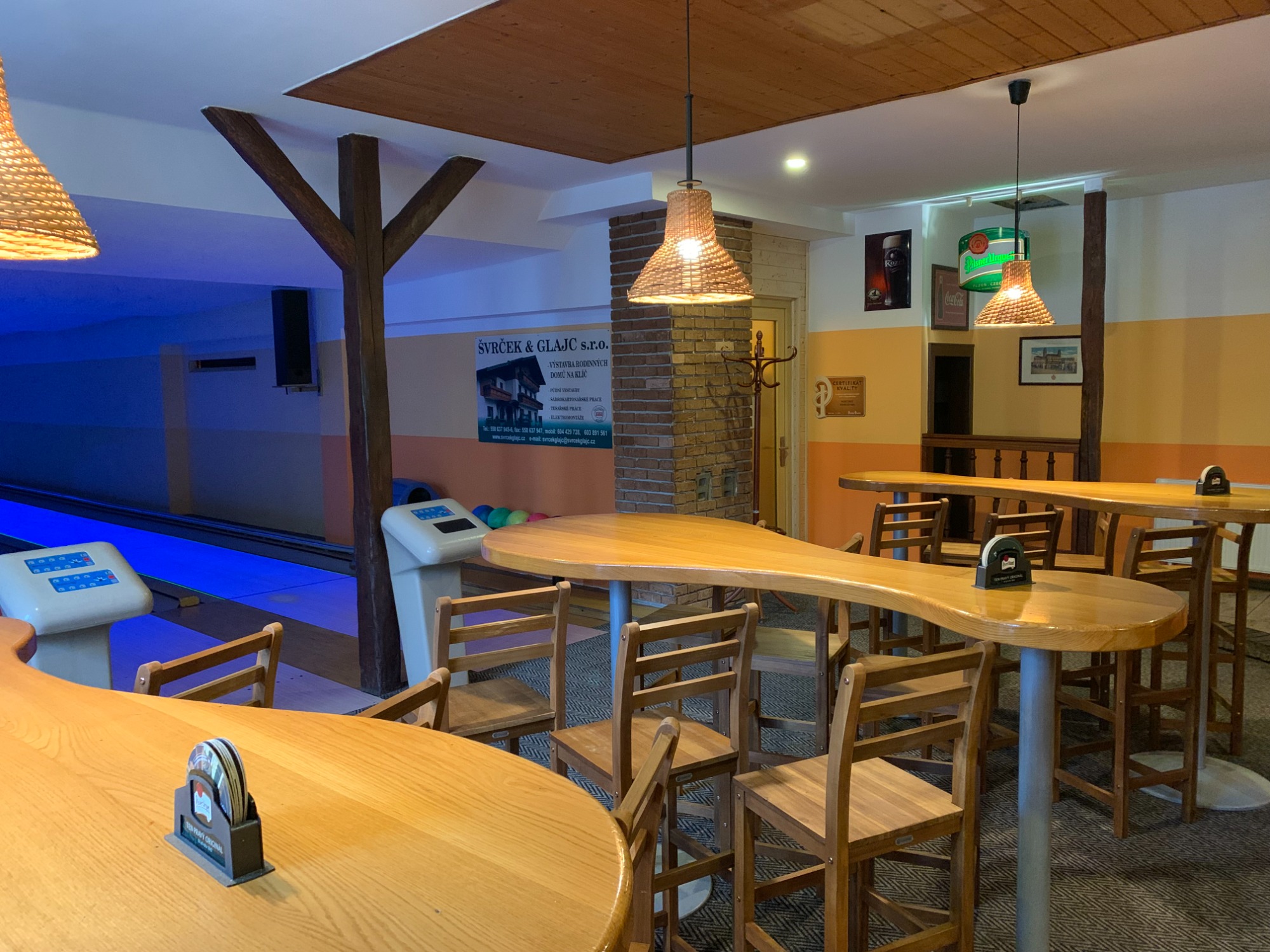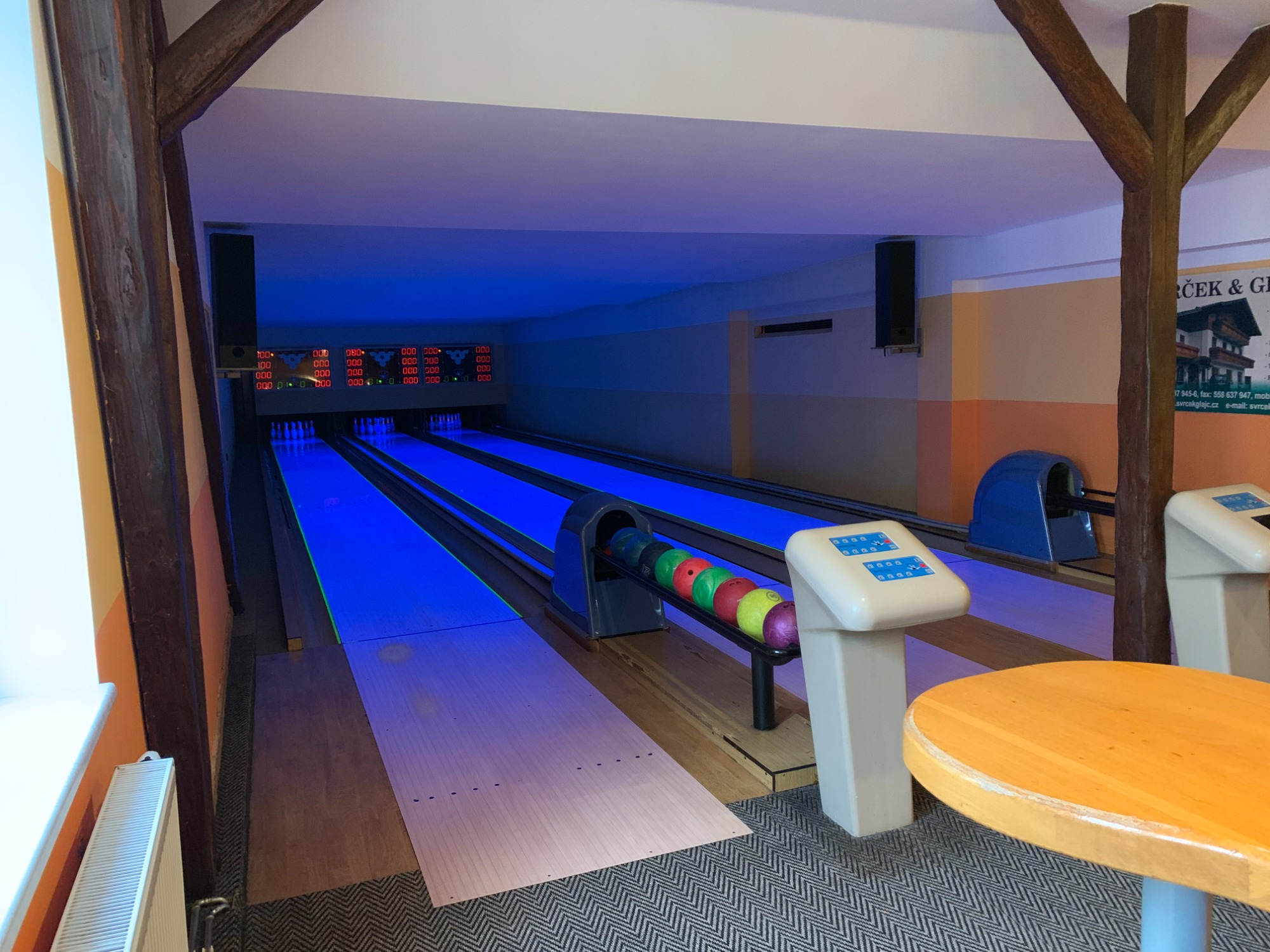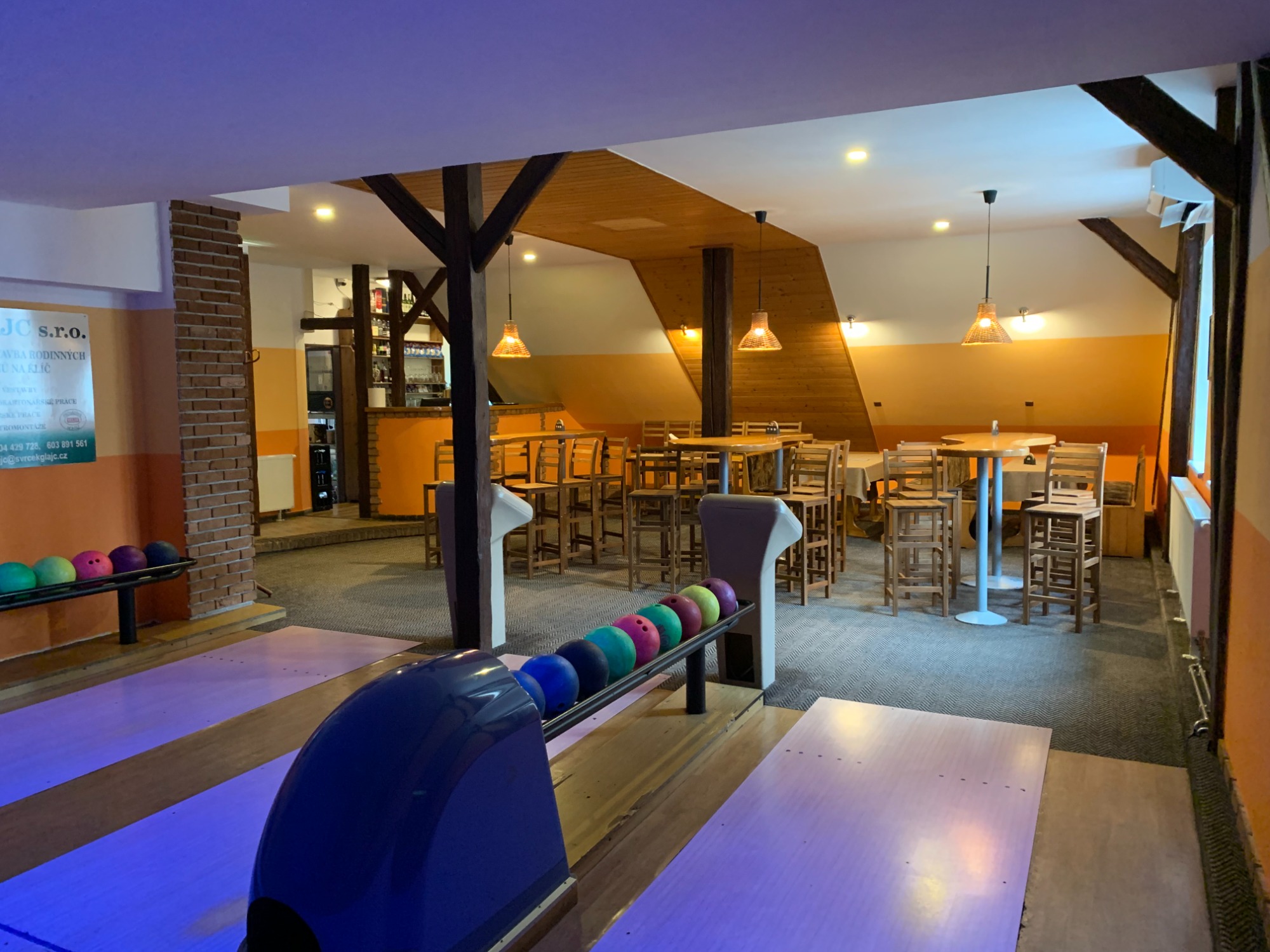 Můžeme Vám nabídnout tři bowlingové dráhy s dostatkem míst k sezení pro všechny účastníky, vlastní bar s výčepem je samozřejmostí. Bowling si u nás jednoduše zarezervujete do pár sekund stisknutím rezervačního tlačítka níže.